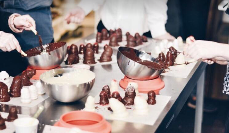 - Du lærer hvordan man sprøjter skummet og dypper flødebollen i 71% chokolade.